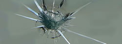 Bullseye damage is round shaped chip with no cracks protruding outward. Stones and other debris can cause a bullseye chip on your windshield. The Bullseye chip is the least likely type of chip to spread or crack further. However, when this damage occurs, immediately call the windshield repair experts at Auto Glass Xpress to have your windshield repaired as quickly as possible, before the Bullseye Stone-Chip damage spreads or cracks any further, causing you additional damage and repair cost.